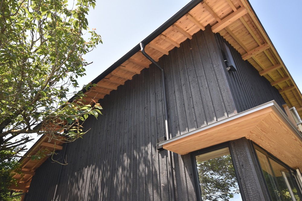 焼杉は、杉を焼いてその表面を炭化させたものです。西日本を中心に、古くから家の外壁として使われてきました。なぜ表面を焼くのかというと、耐久性を増やし、板の劣化を遅らせることができるからです。炭化した部分は腐食を防ぎ、乾燥した木材より着火温度が高く火にも強いのです。