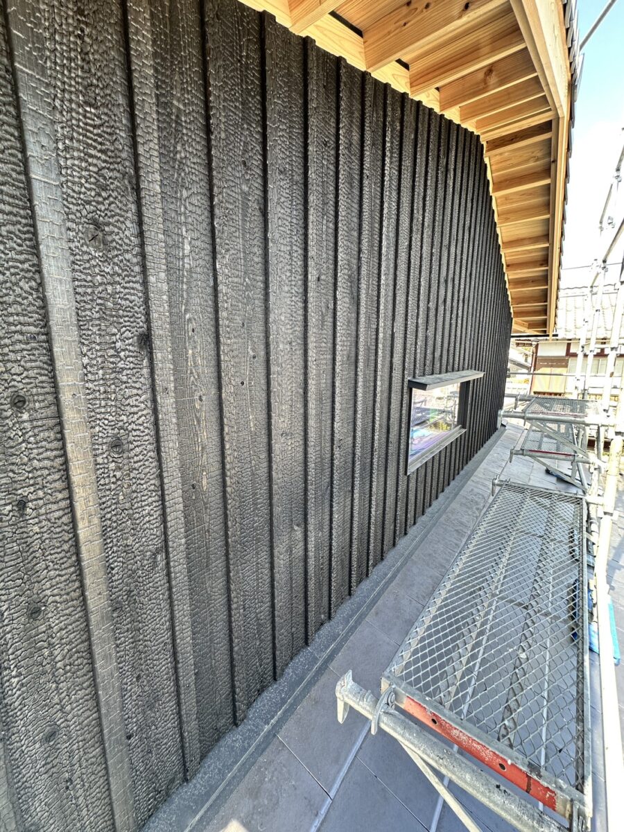 こんにちは。墳下です。ちょっとずつ日中は暖かくなってきましたね。仕事もやりやすくなってきました。雪も落ち着いたので高月の家にて焼杉を張りました。