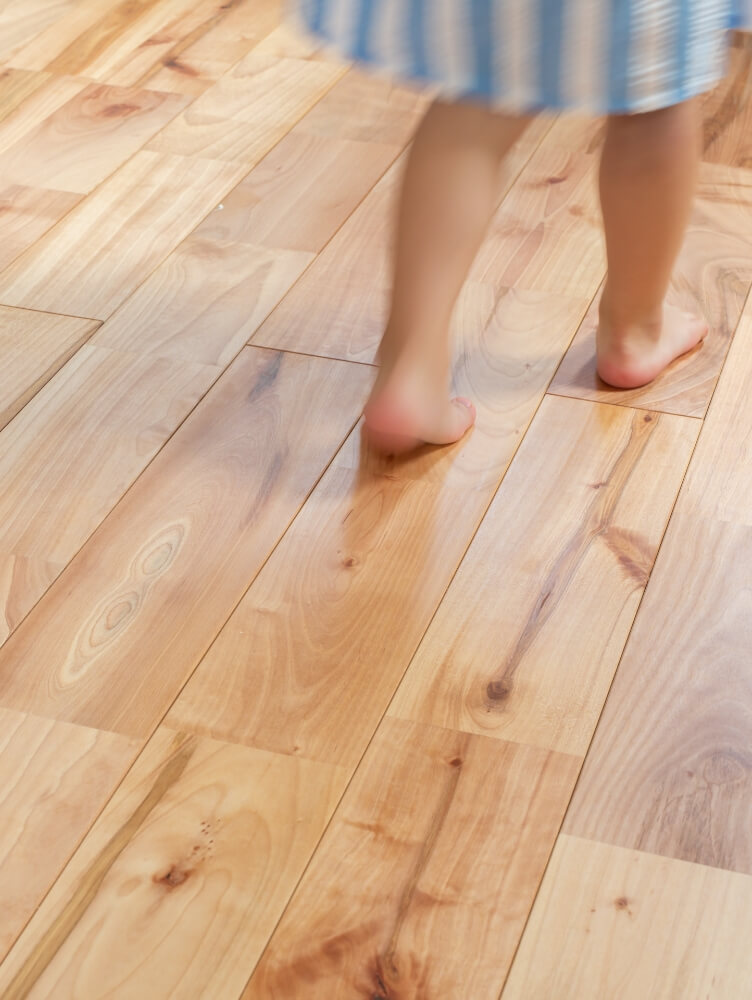つかした建築では、北海道産の国産材無垢フローリングを採用しています。流通、製材、加工、保管の全てを証明できるメーカーと取引し、実際に代表自身も北海道の原木林へ足を運び、植林など持続的に山の資源を活用できるように配慮しています。触り心地・踏み心地の良い無垢床をお楽しみください。