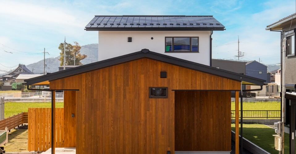 杉板の外壁は、滋賀県でよく見られる仕上げの1つです。杉板貼りの外壁は、自然な風合いと温かみが魅力で、経年変化が楽しめる外壁材です。意外にも外壁材の中でも、正しく使えば一番耐久性やメンテナンス性が高く、部分的な張り替えも容易なため、長く住む家には適した素材と言えます。