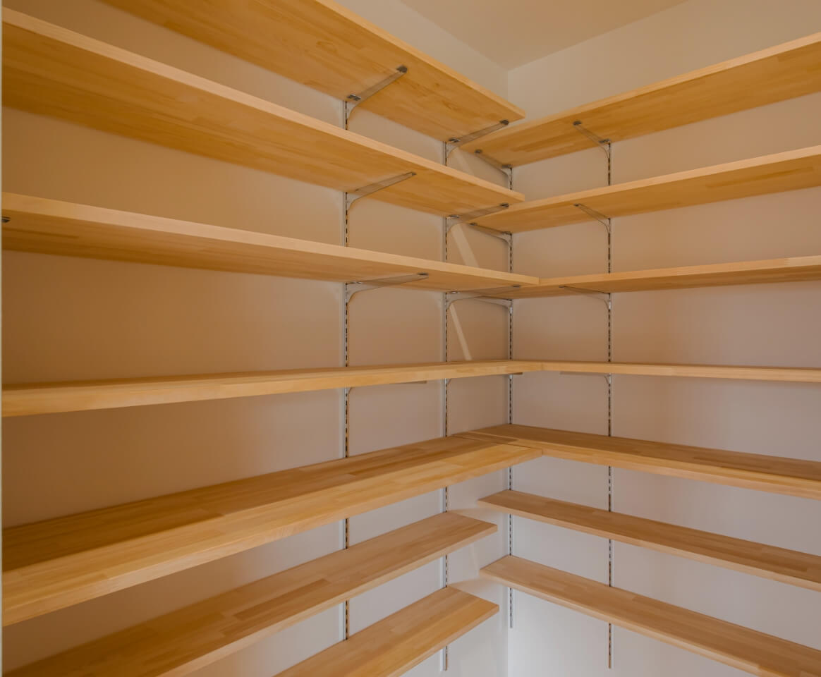 暮らしの質を左右するのが収納計画です。使う場所に使うものをしまえるよう、動線と連動させた収納計画を行うことで、片づけが楽になり、家の中が散らからずに自然と整います。子育て期のモノの増減や、年齢とともに変わる生活スタイルにも対応できる無理のない収納設計をご提案しています。