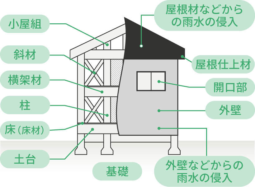 家で最も重要なのは構造です。また木構造において天敵は水です。構造と防水(雨漏れ)における不具合は責任期間が瑕疵保証の観点から10年定められていますが、つかした建築ではそれを上回る20〜60年で保証をしています。