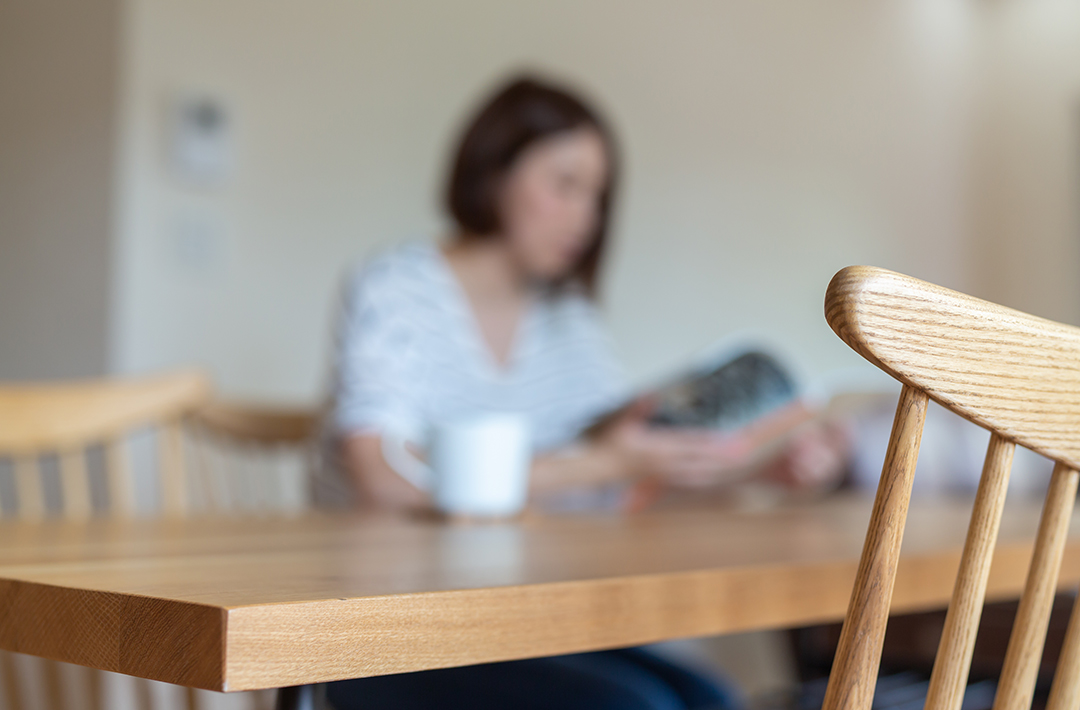 広々とした空間を作りながら、造作キッチン収納や大容量のパントリー、そしてパパとママのワークスペースをキッチン脇に設けた欲張りな間取りに。リビングと連なったダイニングでホッと一息ついて、お茶をするのもいいですね。