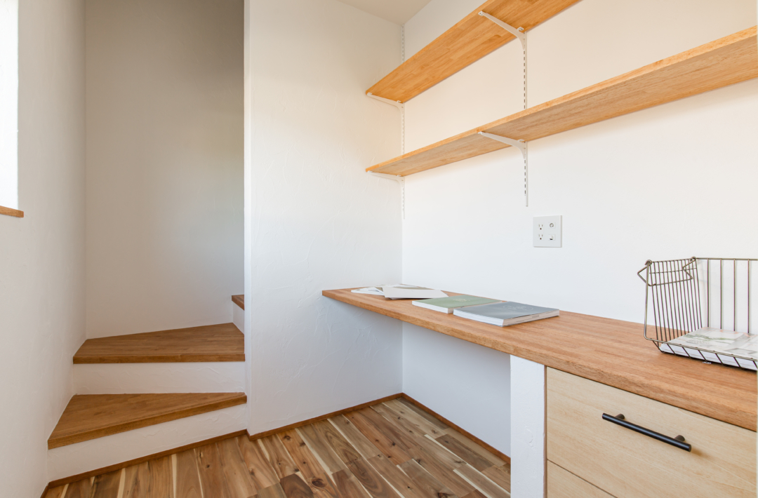 つかした建築標準の漆喰や無垢材といった自然素材を使用。 木質繊維断熱材を採用し高気密高断熱の心地よい住空間ができました。 アクセン[...]