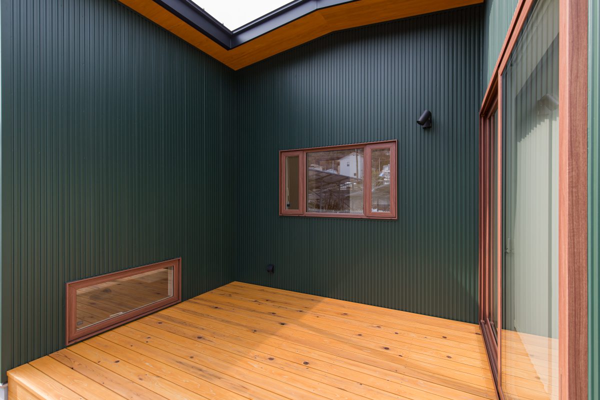 掃き出し窓を開ければ、リビングとひとつづきになるウッドテラス。